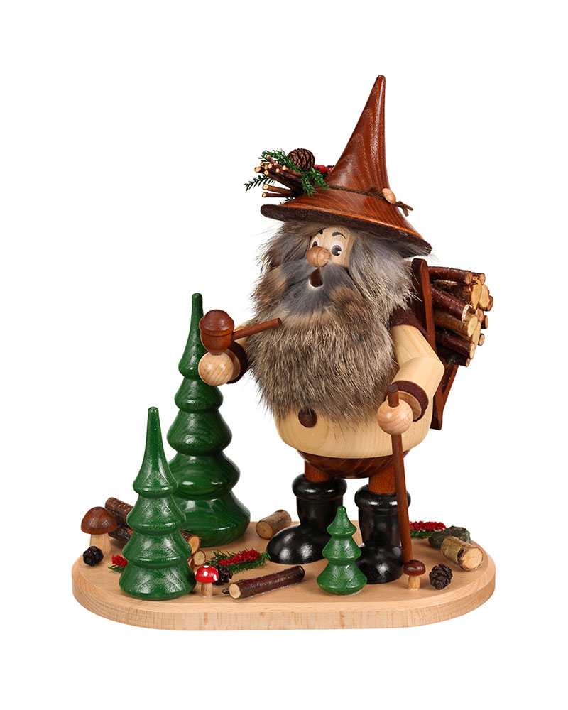 - Ausgestattet mit einem Rauchauslass, ermöglicht der „Erzwichtel Holzkiepe“, Räucherkerzen zu verwenden, die sanft duftenden Rauch durch den Mund des Wichtels abgeben.