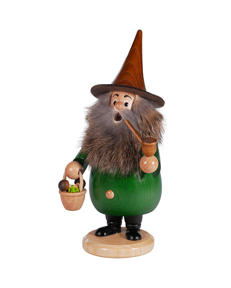 Bringen Sie ein Stück traditionelle Handwerkskunst in Ihr Zuhause mit unserem Wurzelzwerg „Pilzsammler grün“. Dieses kunstvoll gefertigte Männlein verkörpert die Feinheit und Liebe zum Detail die man von echter Handarbeit erwartet und wird seit den frühen 90´iger Jahren bei uns im Hause gefertigt und erfreut sich nach wie vor großer Beliebtheit. Der Räuchermann ist aus hochwertigem Holz gefertigt und liebevoll von Hand bemalt und zusammengebaut.